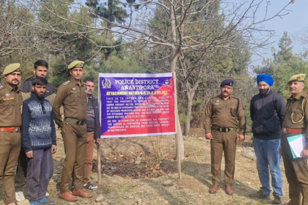 Srinagar, Nov 22: Police in Jammu and Kashmir’s Pulwama district on Saturday attached the property of a terror handler operating from Pakistan-occupied Kashmir, officials said.Police attached the immovable property at Syedabad Pastoona in the Tral area of the south Kashmir district, a police spokesperson said.He said the property belongs to Jammu and Kashmir National Operating…